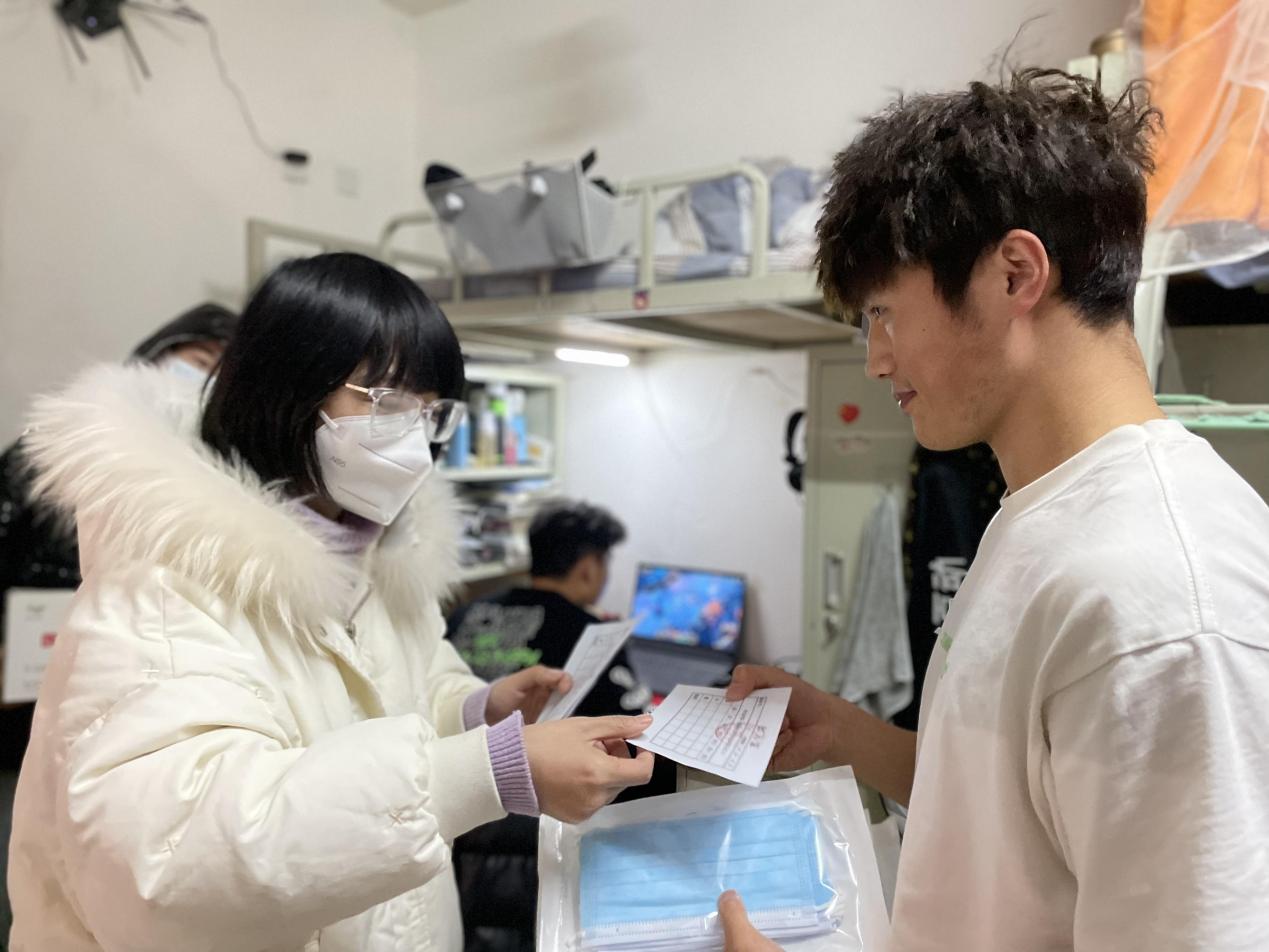 2022年1月9日,疫情防控常态化下,为了进一步了解员工在宿舍的情况并切实提高员工的疫情防控意识,九公寓临时党支部成员深入员工宿舍,看望慰问员工,了解员工身体状况和生活需要,督促员工通过线上课堂,保质保量抓好学习,掌握员工思想动态,激励员工坚定战胜疫情的信心和决心,带着阳光心态,加强体育锻炼,增强身心素质。在给同学们分发口罩等防疫物资的同时,在深入每一间宿舍的过程中,九公寓临时党支部成员也嘱咐同学们要经常开窗通风,就餐完毕的垃圾要及时进行清理不能在宿舍堆放,外出买饭的时候戴好口罩不得在其他地方逗留,及时进行晨午体温监测及打卡、身体不适要第一时间联系老师。勉励员工要积极服从疫情防控的要求,在积极配合公司的防疫工作的同时,保持良好的作息规律,将学习生活合理规划,从宿舍做起、从自身做起、团结协作,共同营造一个良好的学习生活环境。