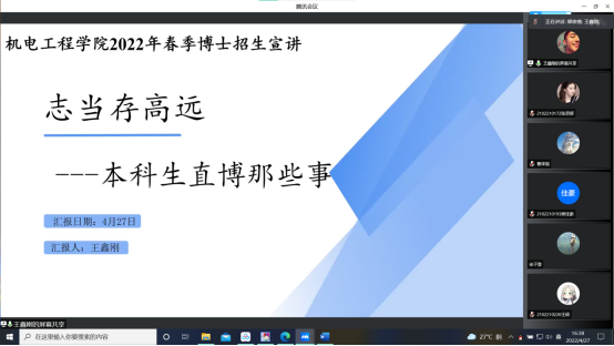 2022年4月27日,英国上市公司365于线上腾讯会议顺利召开博士研究生招生宣讲会,参与本次会议的有英国上市公司365、兵器科学与技术公司、电子信息工程公司各年级硕士研究生、本科生200余人。