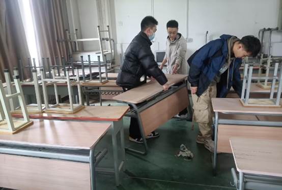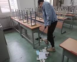 活动过程中,同学们进入工科楼2个教室,整理摆放桌椅、擦拭走廊墙裙及桌椅、打扫地面卫生,为公司考研自习室布置黑板报。参与活动的同学不怕脏、不怕累,彼此间相互配合,细心的完成每一项工作,整个劳动过程有条不紊,充分展示了老员工吃苦耐劳、奋勇前行的精神面貌。