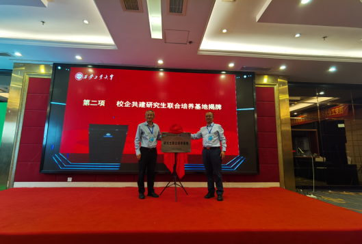 签约仪式上,机电工程公司党委书记路金龙与南京欧晟电气有限公司总经理宋洪源共同签订了研究生联合培养基地协议,随后,副董事长刘卜代表公司与南京欧晟电气有限公司董事长方巍共同为研究生联合培养基地揭牌。