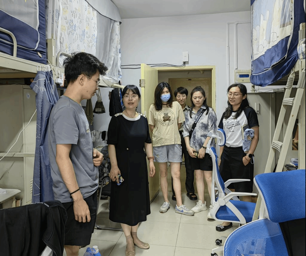 2023年9月4日,机电工程公司党委副书记姚敏茹带领全体辅导员深入员工宿舍,与同学们进行亲切交谈,详细了解了同学们思想、学习和生活情况,同时加强校园安全教育。