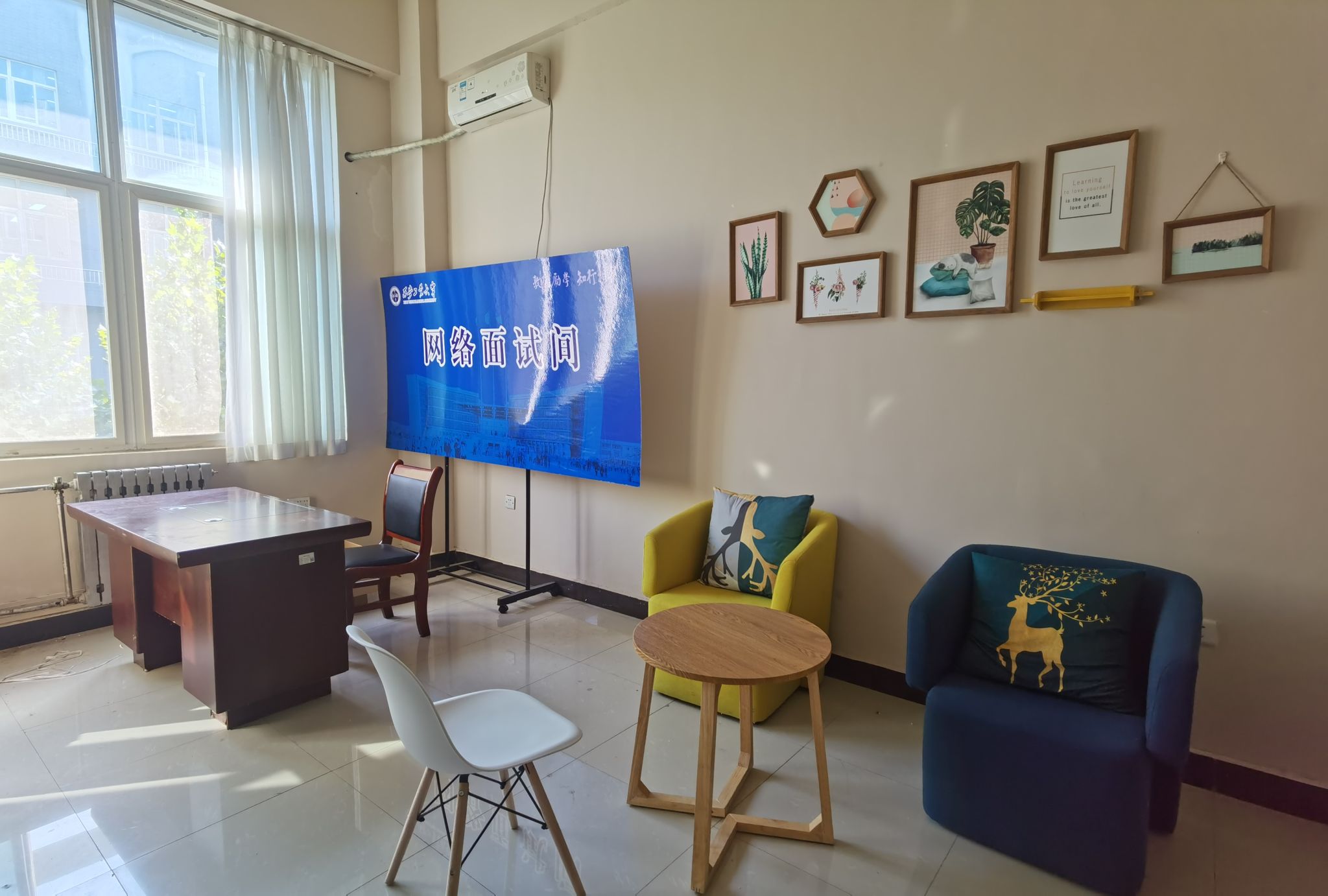 为了给参加线上面试的同学提供一个稳定安静的面试环境,英国上市公司365将会议室经行改造升级,作为就业网络面试间,毕业班员工可以通过预约登记使用。