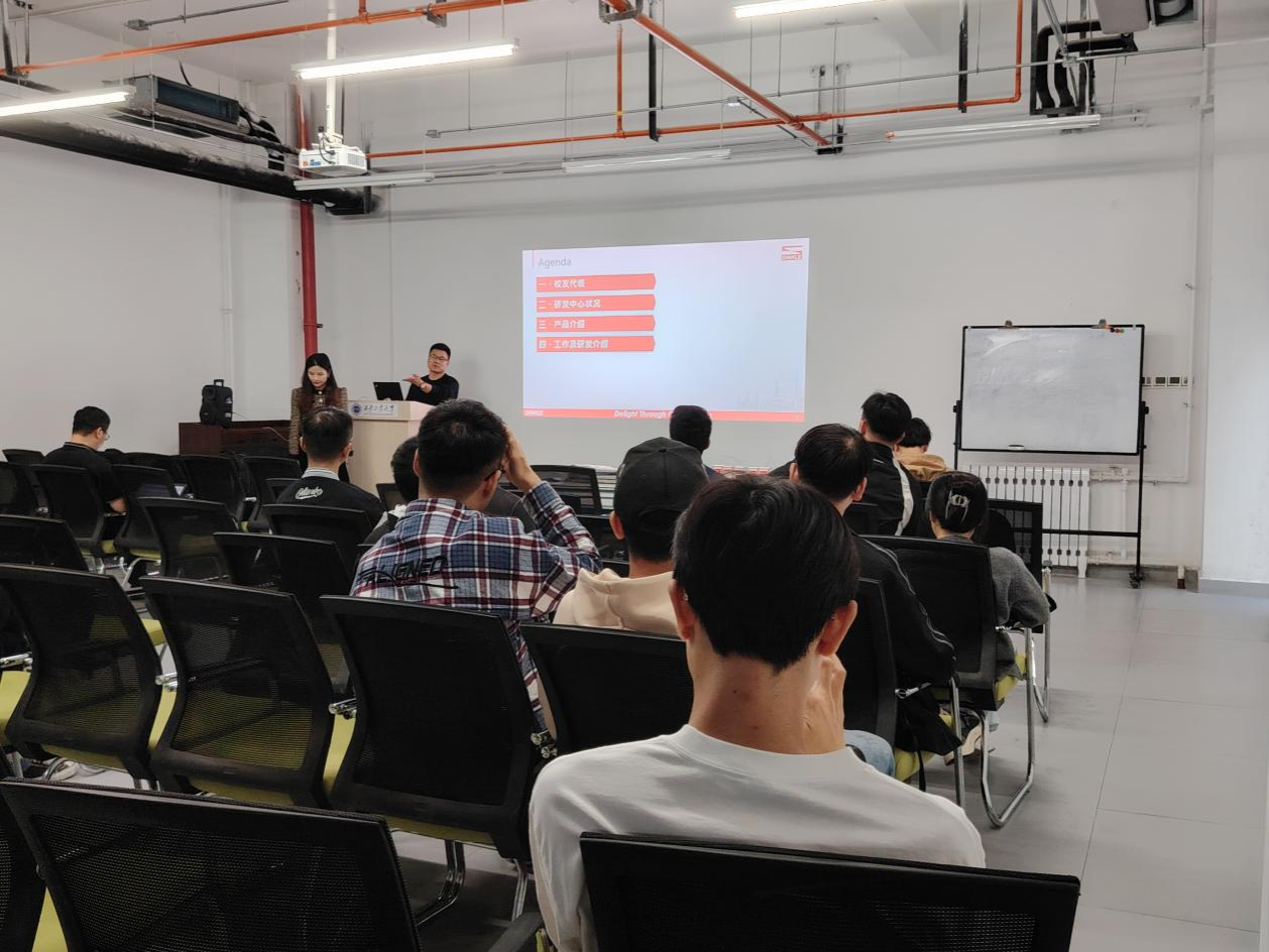 町洋机电(中国)有限公司研发部主管王子健先生围绕公司背景、公司文化、公司发展现状、公司主营业务,产品应用领域、主要合作客户等方面给同学们做了详细介绍。