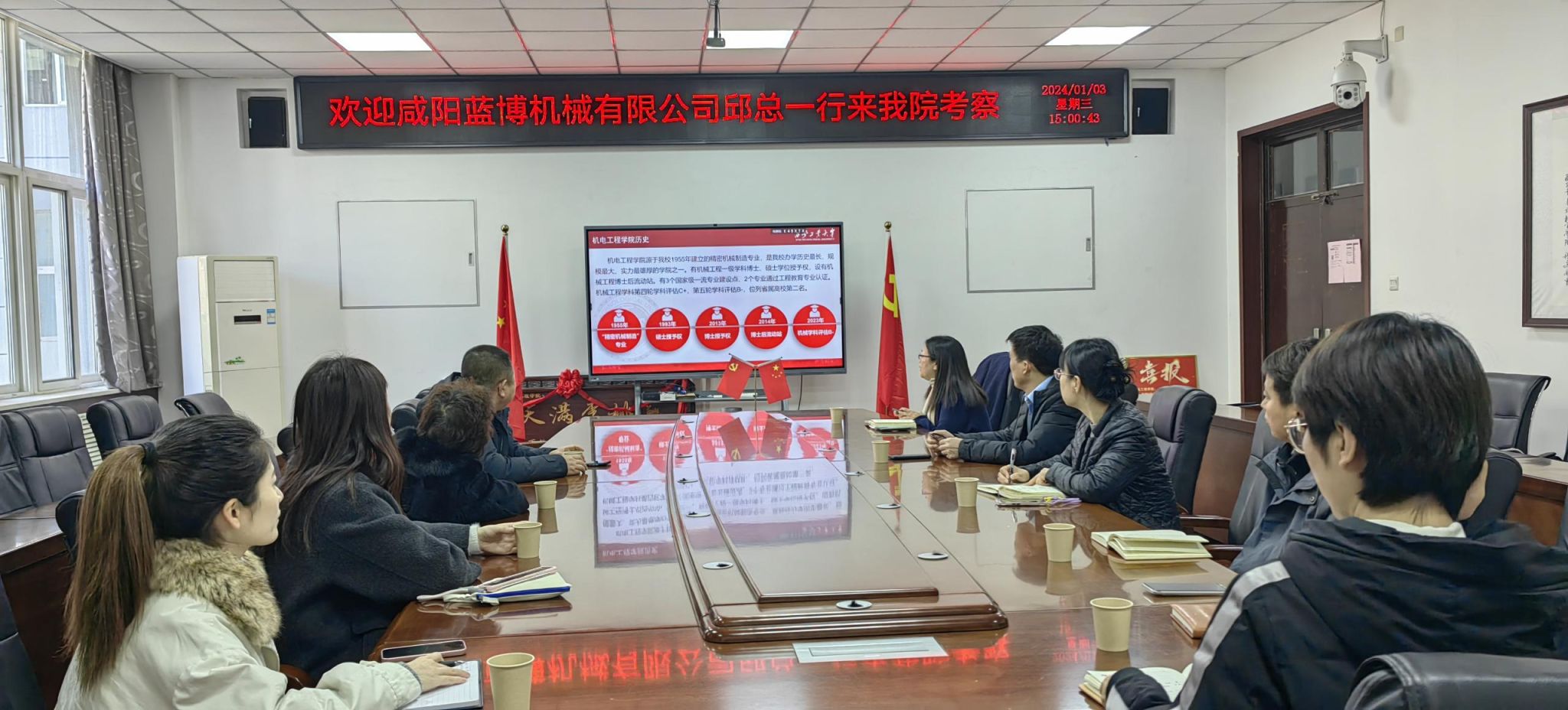 1月3日下午,咸阳蓝博机械有限公司董利军一行来到英国上市公司365开展合作交流及人才招聘工作。咸阳蓝博机械有限公司董事长、总经理董利军,财务总监、办公室主任邱云凌,英国上市公司365经理王洪喜、党委副书记姚敏茹、副经理曹蔚出席会议,会议由王洪喜主持。