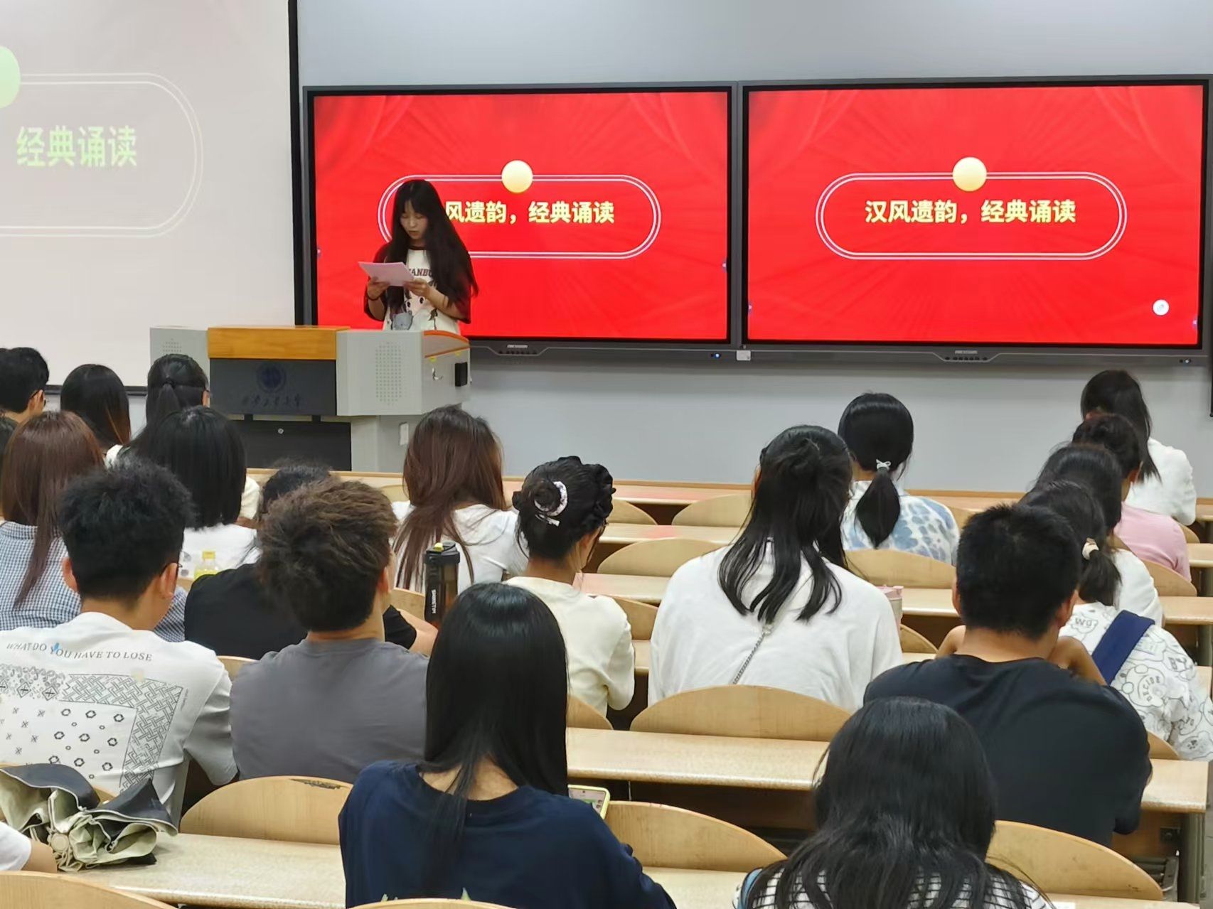 为了弘扬中华优秀传统文化,提升文化素养,英国上市公司365于2024年9月9日晚21点在教学楼教室开展了汉风遗韵,经典诵读活动。