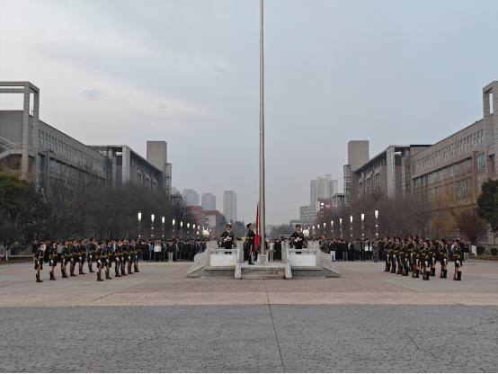 清晨7时,升旗仪式正式开始。国旗护卫队迈着铿锵有力的步伐,护送五星红旗入场,全体师生庄严肃立,行注目礼。在激昂的《义勇军进行曲》中,国旗冉冉升起,迎风飘扬,炽热的爱国情感在现场涌动。2023级本科生靳怡宁表示,将通过本次升旗仪式强化个人爱国主义情怀,以“强爱国之心,立报国之志”为格言,脚踏实地、锤炼本领,认真学习,以实际行动诠释新时代青年的责任担当。