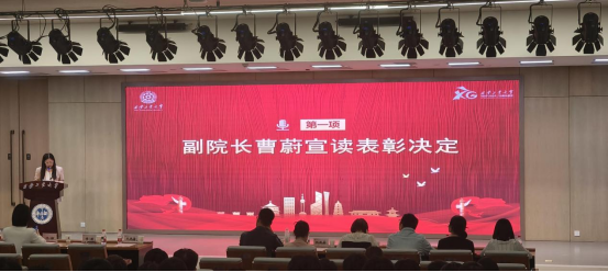 在热烈的掌声中,副经理曹蔚宣读了《关于表彰先进集体和优秀个人的决定》,向所有在学业、科研、服务、实践等方面表现突出的师生致以崇高敬意,并勉励广大同学继续向榜样看齐,勇攀高峰。