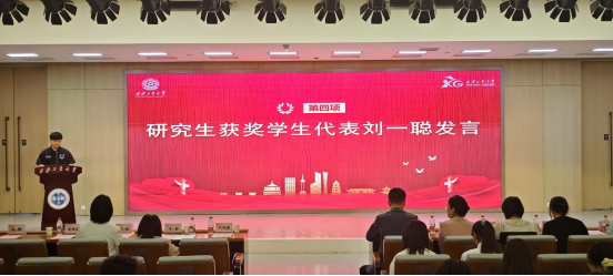 研究生刘一聪以“青春因磨砺而精彩,人生因努力而充实”寄语在场同学,激励大家不负青春、不惧挑战。