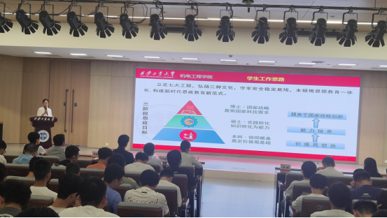 公司经理王洪喜介绍了公司的发展历程、团队力量、团队建设、科研成果和公司人才培养成果,帮助新生们更好地了解所学专业,明确学习方向。他强调,机电工程作为一门综合性学科,在国家工业现代化进程中扮演着重要角色,鼓励同学们珍惜大学时光,努力学习专业知识,培养创新精神和实践能力,为未来的职业发展打下坚实基础。