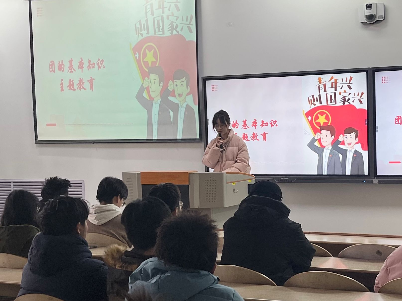 最后,主持人对本次活动做出总结。至此,本此新发展团员入团宣誓仪式圆满结束。